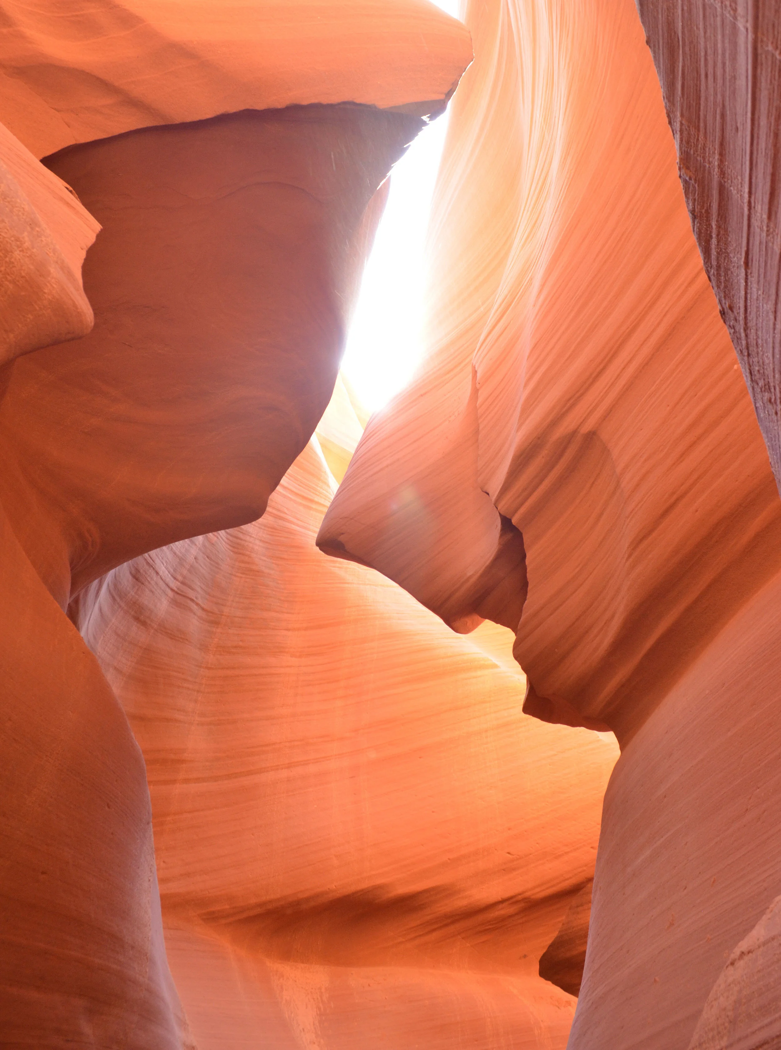 The sun shown through the different crevices creating stunning light beams and hues of every shade of orange imaginable. Lower Antelope Canyon is about 1/2 a mile long and took us a little over an hour to go through as we stopped for photos and to take in the beauty.