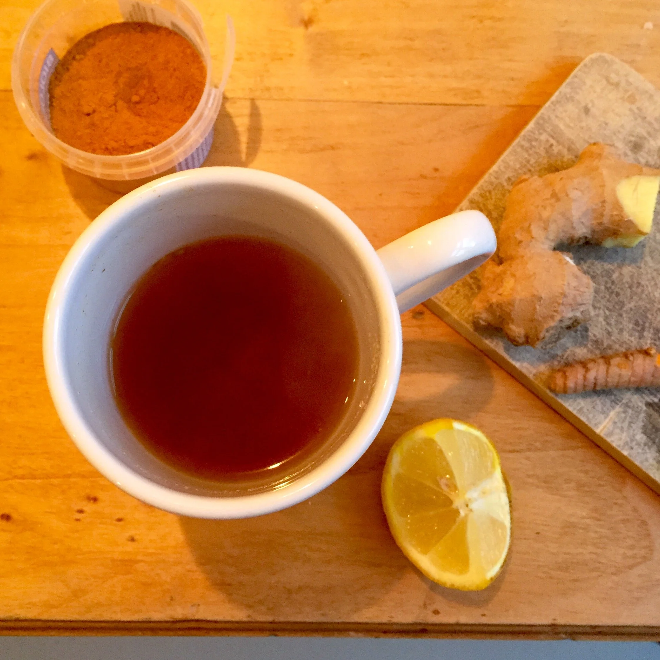 7:45 am: Everyone is downstairs. The kids have some fruit and bread with peanut butter and apple stroop (a Dutch thing) and water. My husband and I have oatmeal with fruit. I drink my special ‘tea’ (hot water, fresh lemon juice, cayenne pepper, tumeric and ginger root). I don’t have coffee until I am at the office.