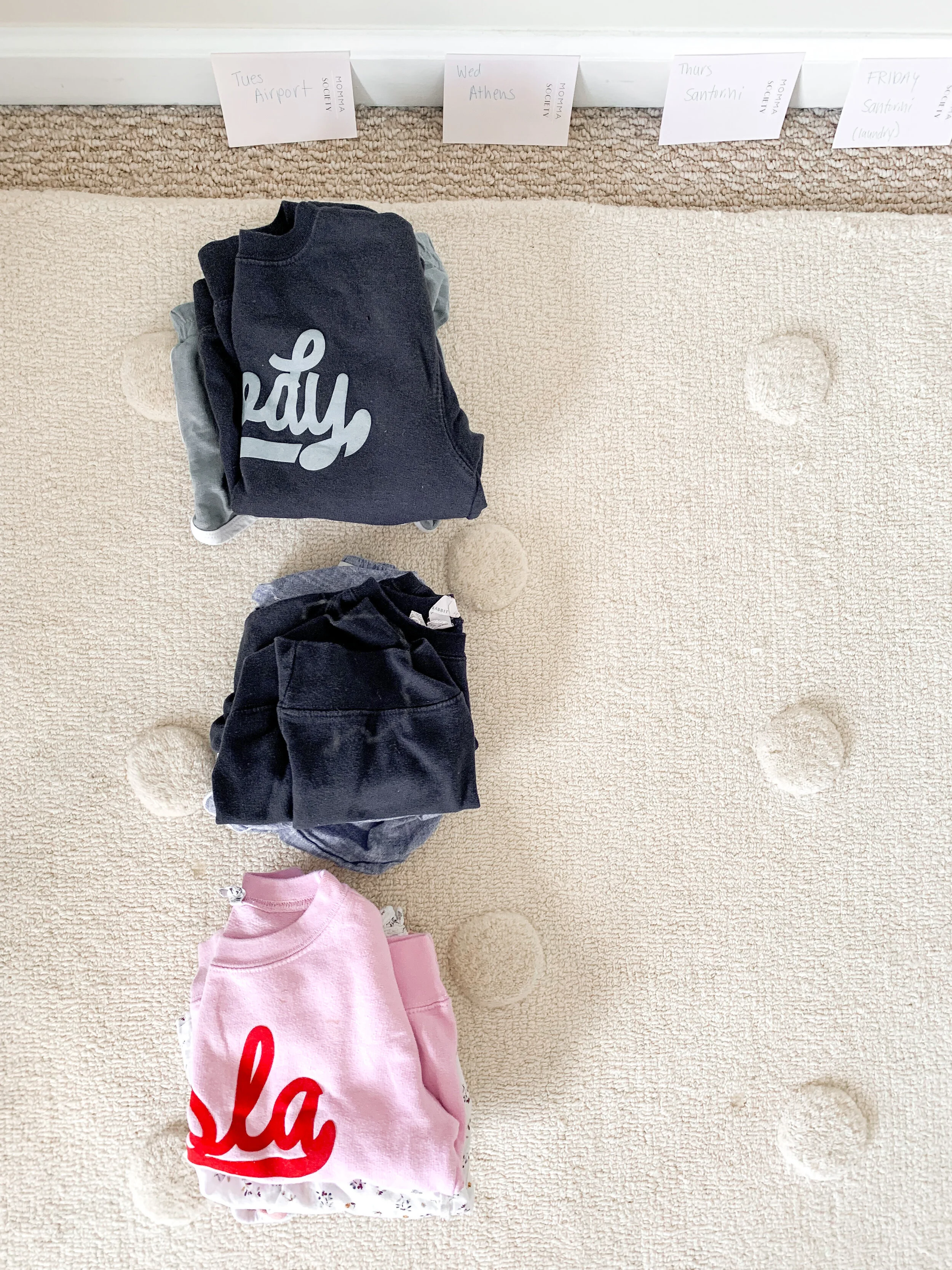 This is hands down the best strategy I’ve found for making sure you aren’t overpacking. It is also a game changer on the trip because all of the outfits are planned out and mom/dad/grandma/anyone can grab the bag for the day and make sure everyone is dressed and ready to go.