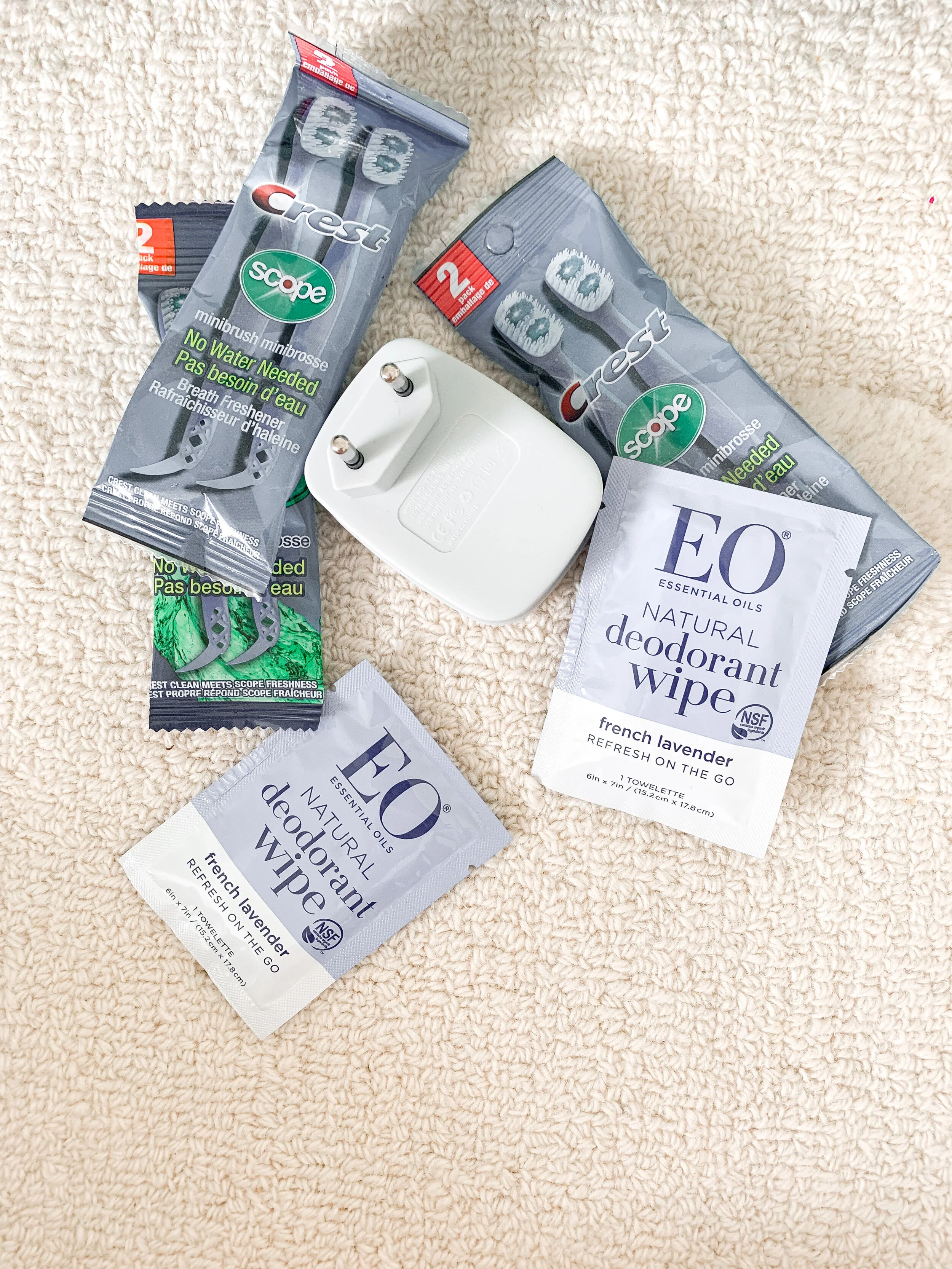 Clorox Wipes: Yes, I’m that crazy lady that makes the plane smell like bleach as soon as we sit down.