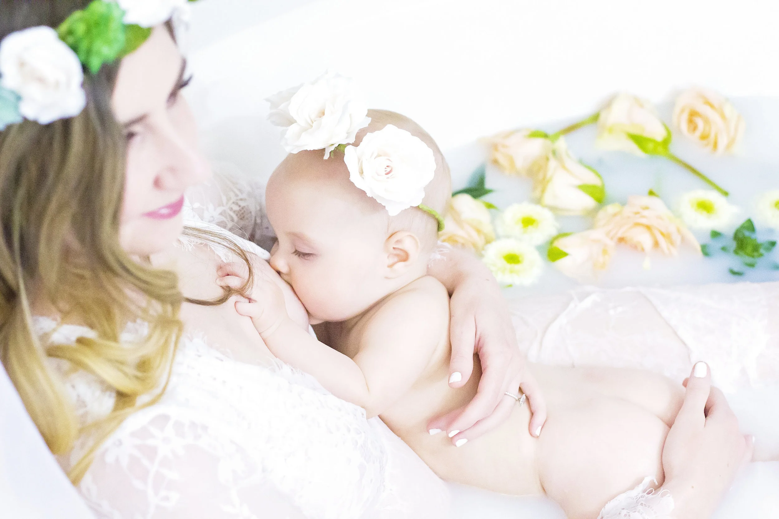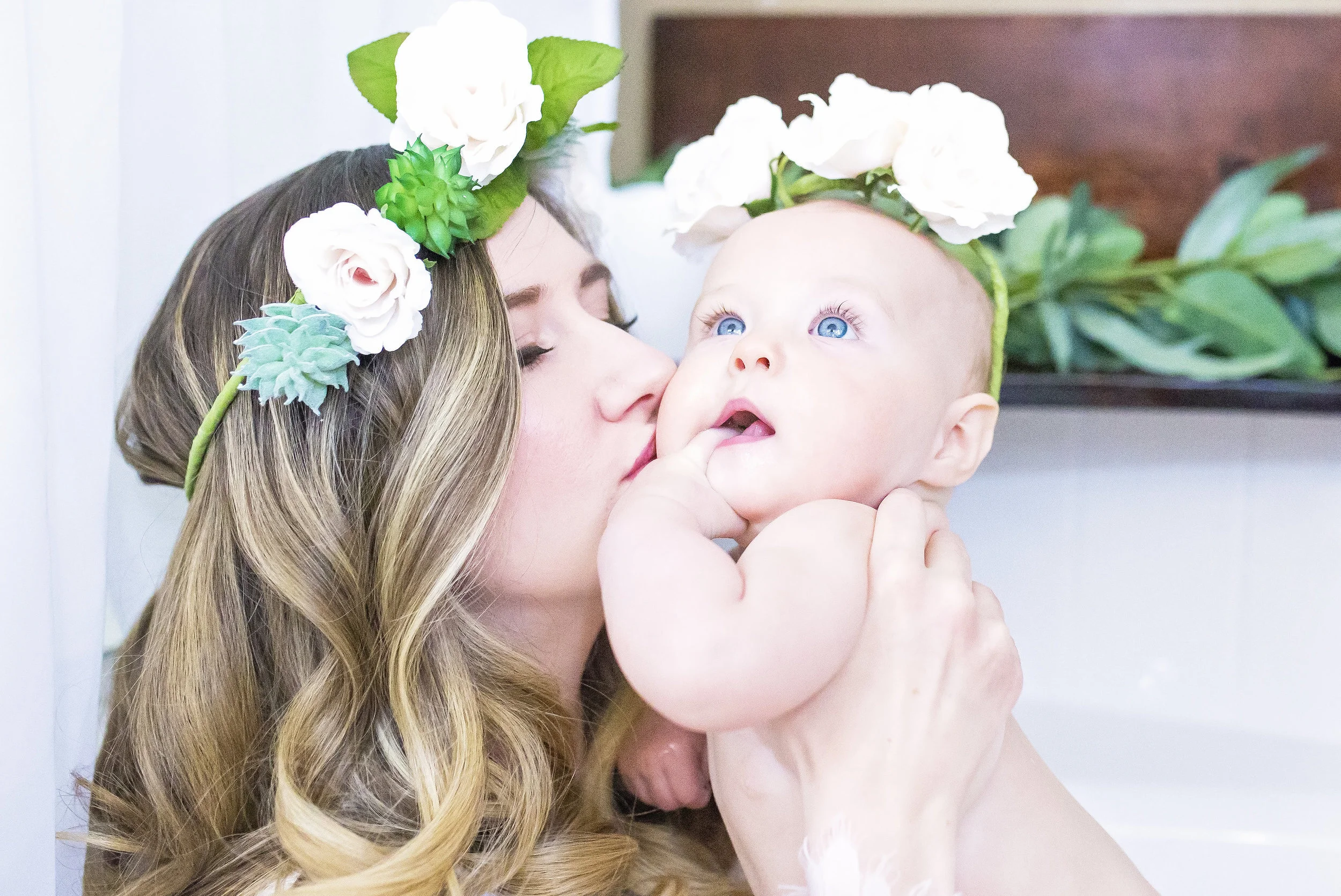 When my uber talented friend, Dana from Pictiur Photography, asked if Isla and I would be muses for a dreamy nursing milk bath shoot, I could not say "yes" fast enough. Last weekend Isla and I spent the morning snuggling in a bath together with beautiful flowers floating around us while Dana captured some of my favorite photos to date of my little Isla. How fun it has been to see this come full circle from my maternity milk bath pictures when Isla was in my belly to now being cradled in my arms.