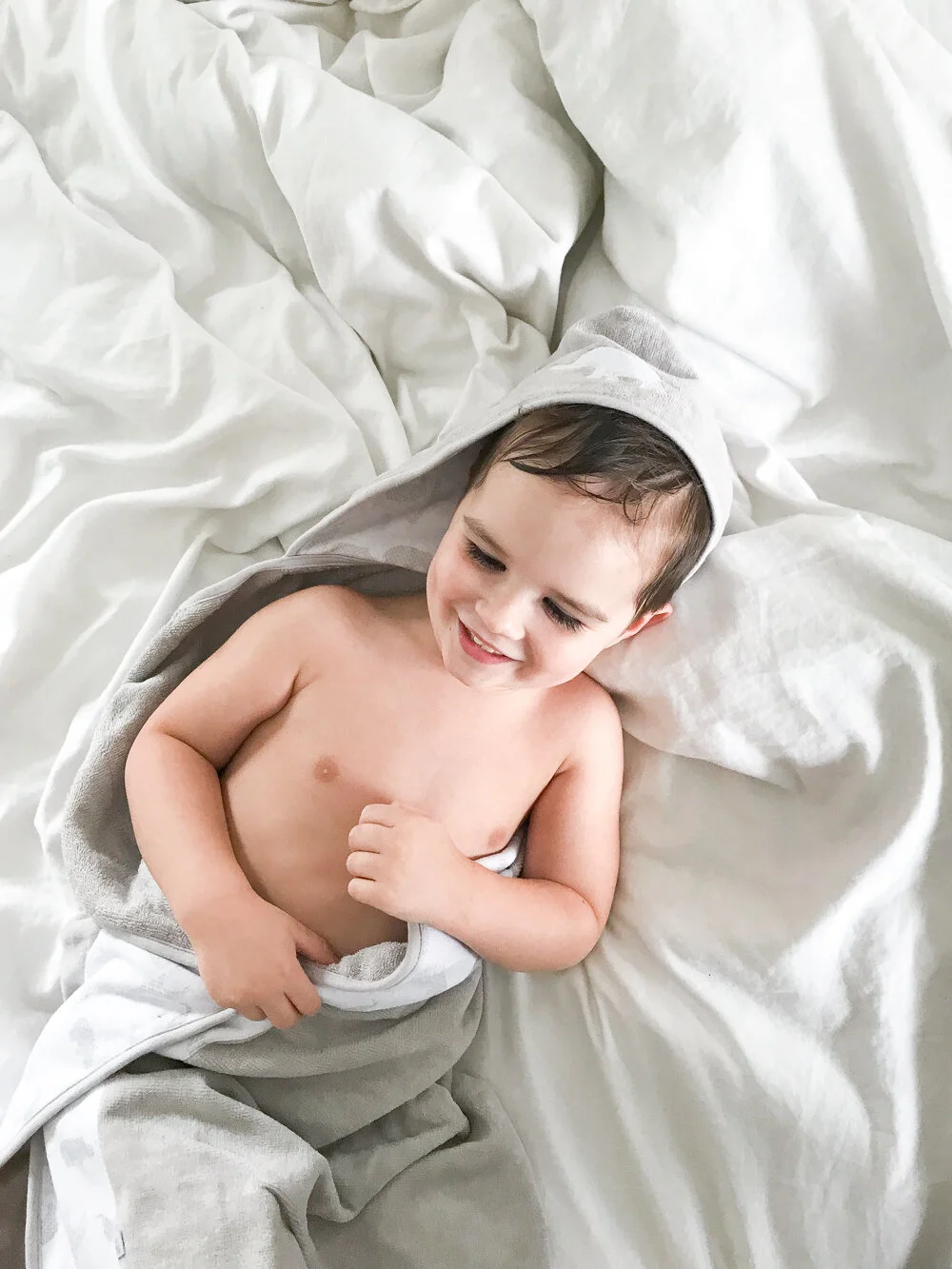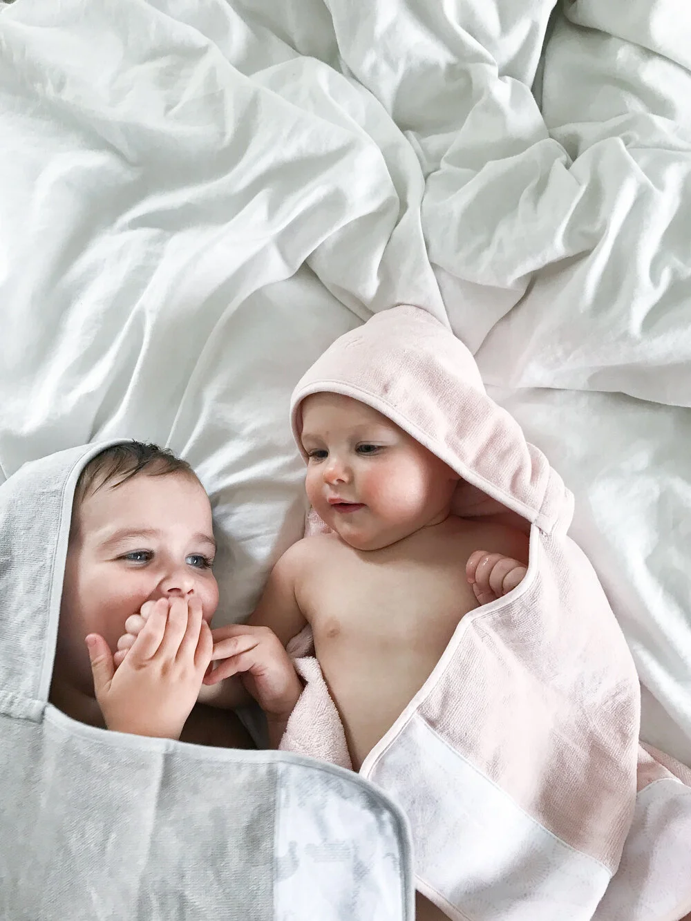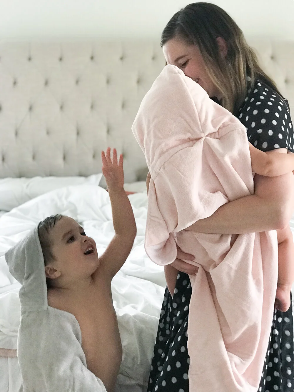 When you were a kid, did you ever wrap yourself up in a fluffy towel pretending that it was a huge, soft robe or cape? That’s the feeling I want to give my kids when they’re toweling off and Just Born makes that so easy to do!